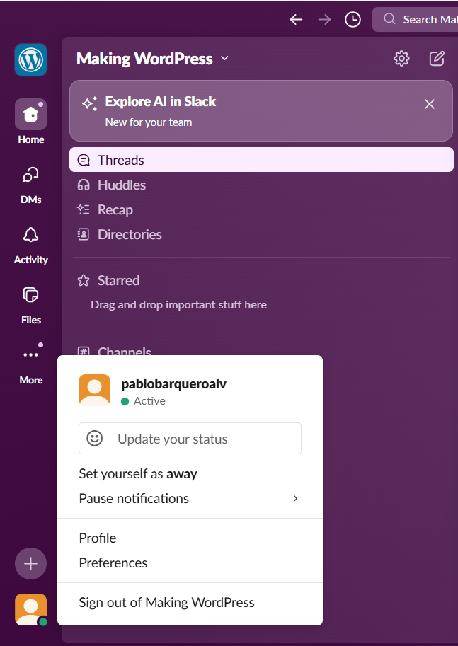 Cuenta creada en WordPress y slack